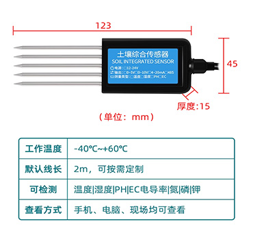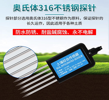 適用于土壤溫度以及水分的測(cè)量,經(jīng)與德國(guó)原裝高精度傳感器比較和土壤實(shí)際烘干稱重法標(biāo)定,精度高,響應(yīng)快,輸出穩(wěn)定。