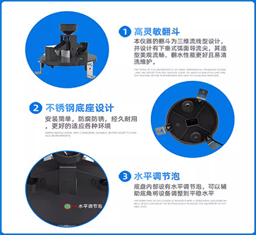 設(shè)備采用ABS工程塑料注塑而成,光潔度高,不起銹,翻斗部件支承系統(tǒng)制造精良,摩阻力矩小,因而翻斗部件翻轉(zhuǎn)靈敏,性能穩(wěn)定,工作可靠。