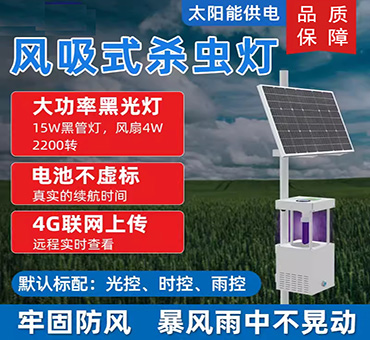 太陽能電池板為電源,白天儲(chǔ)存電源,晚上為殺蟲燈提供電源,能量轉(zhuǎn)化率高且環(huán)保。