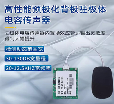 PCB板載安裝方式,30~130dBA寬量程、20~12.5KHz寬頻率測量,輸出接口TTL或RS-485出廠可選,供電電源4.5V~5.5VDC、10~28VDC可選。