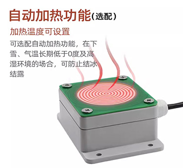 選配有加熱功能,當檢測到氣溫低時,自動啟用下雪加熱功能來加速去雪冰,使得測量的速率加快。