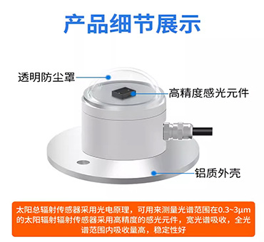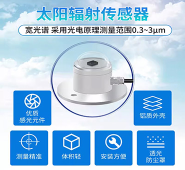 輻射傳感器的核心器件是高精度感光元件,采用寬光譜吸收感光元件,全光譜范圍內(nèi)吸收量高,其穩(wěn)定性好、精度高.