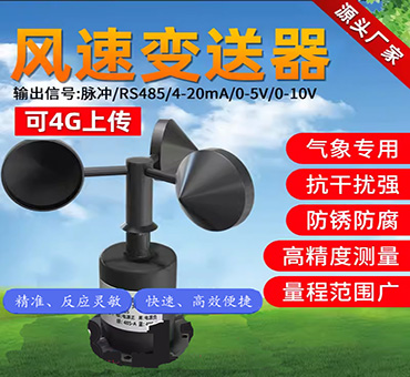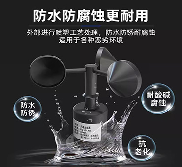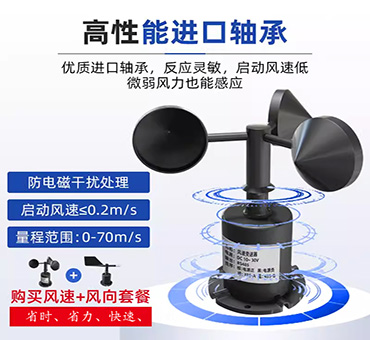 采用傳統(tǒng)三風杯風速傳感器結(jié)構(gòu),量程為0~70m/s,杯體內(nèi)置信號處理單元能根據(jù)用戶需求輸出相應(yīng)風速信號。