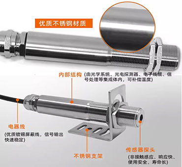 紅外測溫傳感器是一種光電子傳感器,它接收紅外輻射并將其轉(zhuǎn)化成電信號,經(jīng)電子線路放大器、線性化、信號處理,顯示或輸出溫度。