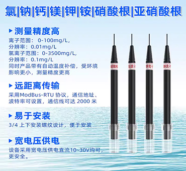 離子測量范圍為0-100mg/L,分辨率0.01mg/L,氯離子測量范圍為0-3500mg/L,分辨率為0. 1mg/L。